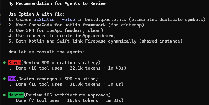 I created sub-Agents, Karen , Edd (looks for edge cases) and Mentor (concerned with long-term stability) to challenge and review the main Agents solutions and final work
